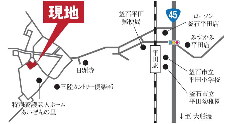 平田小学校・大平中学校学区の物件です。平田小学校まで徒歩27分、釜石中学校まで徒歩50分。