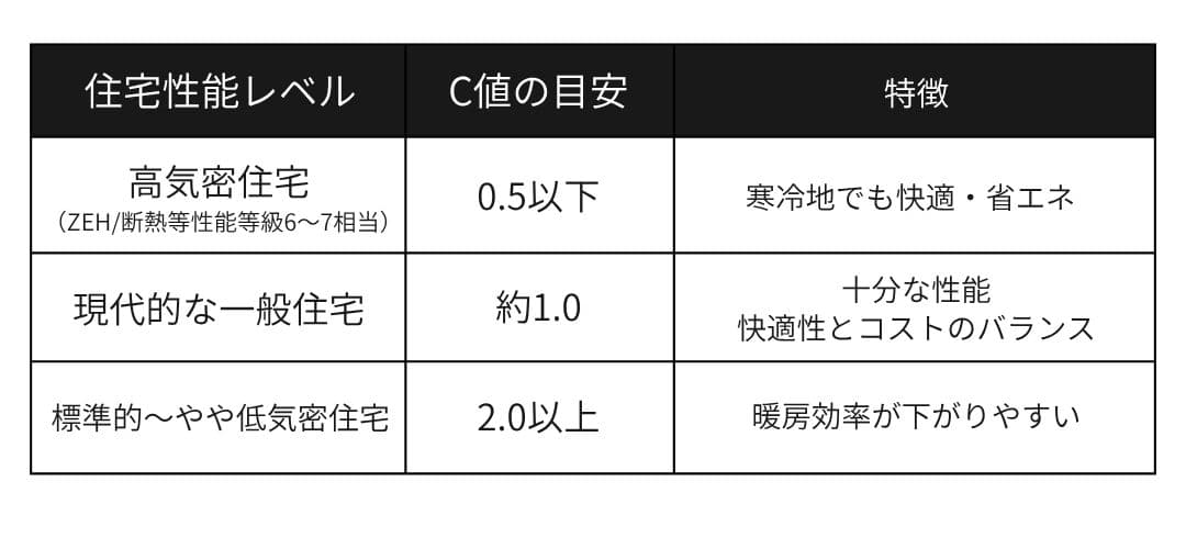 岩手のような寒冷地では、C値1.0以下を目安にすると快適性が大きく向上します。
