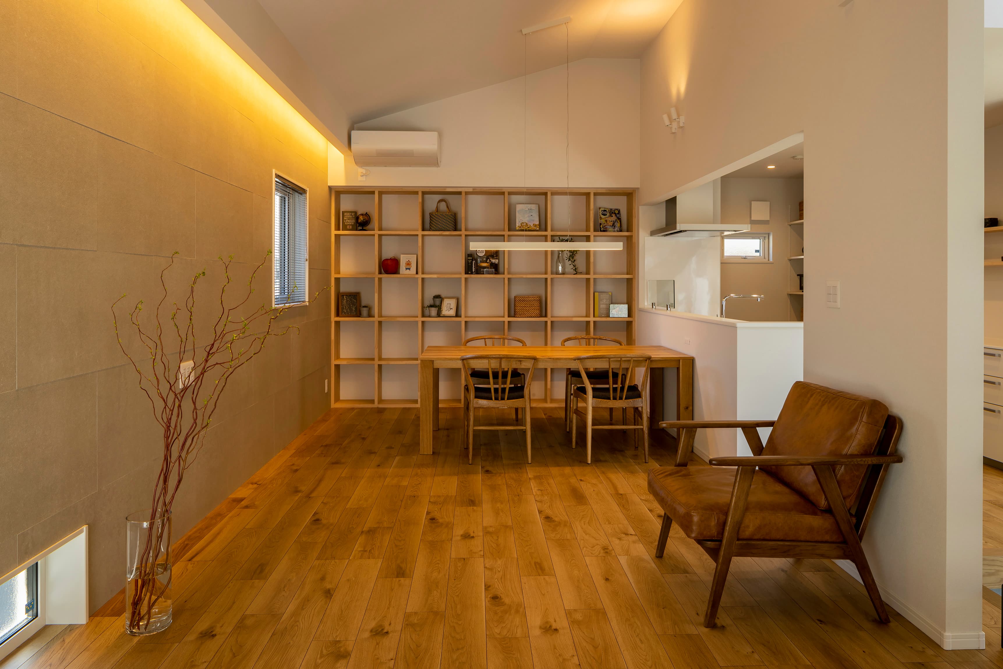 ▲吹き抜け土間や小上がりスペース、心地よい距離感のLDK。それぞれが自分の時間を楽しみながらも、気配でつながる住まいです。
