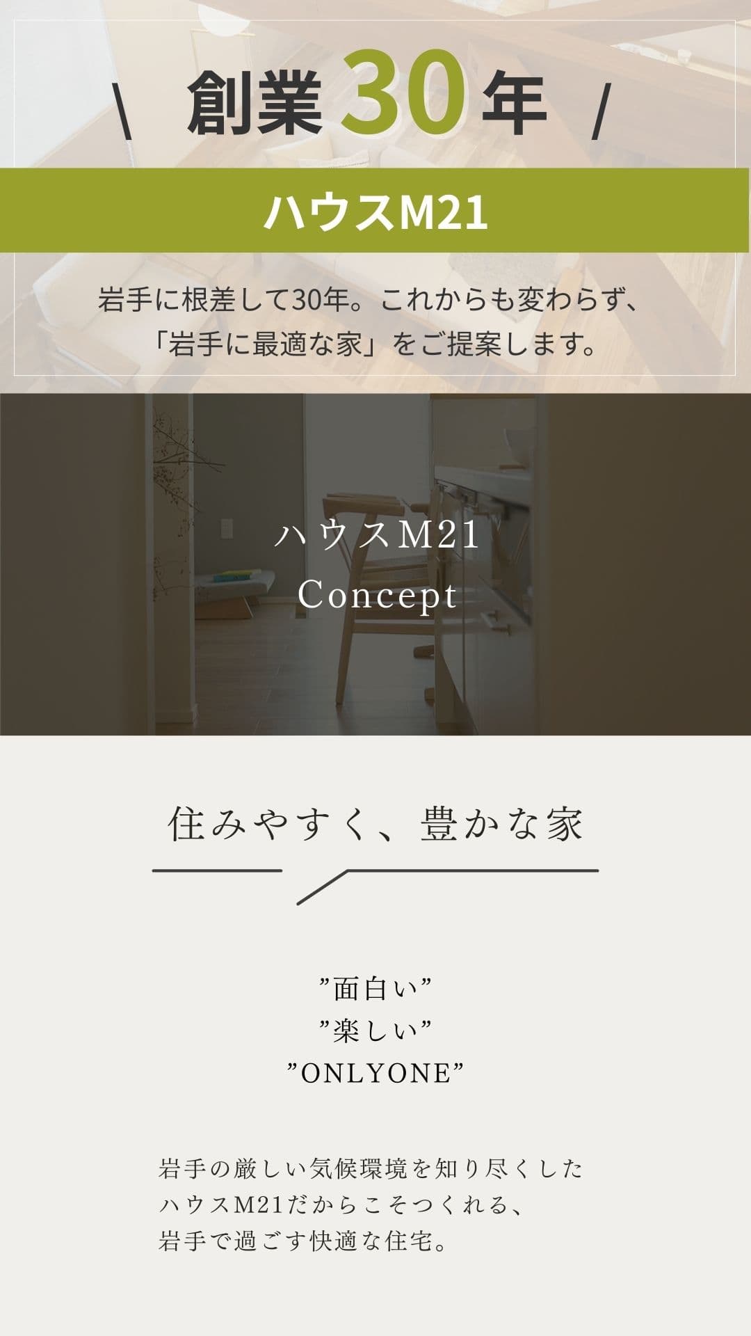 ハウスM21の住まいに対する考えや思い、施工事例なを掲載したコンセプトブックをプレゼントいたします。