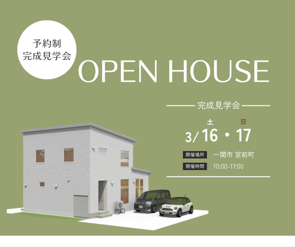 一関市宮前町 3月16・17日 予約制完成見学会を開催いたします。