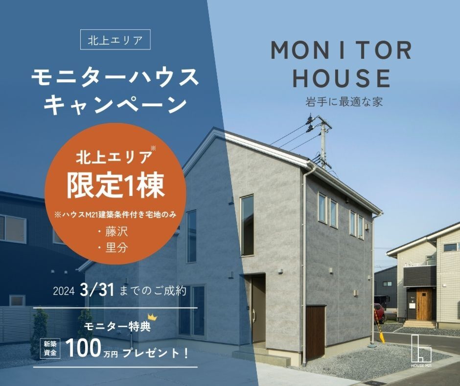 ●特 典 モニターハウスご協力のお礼として、新築資金100万円をプレゼント