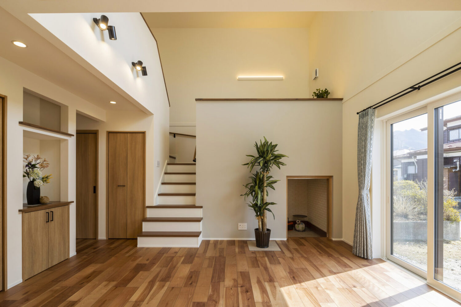 ホーム フォトギャラリー タイプ別 スキップフロア 大空間LDK+スキップフロアのある明るくゆとりのある家 大空間LDK+スキップフロアのある明るくゆとりのある家 宮古市 33.69坪 タイプ別|スキップフロア アイランドキッチンの採用で、行き止まりのない家事動線を確保しました。画像のみを表示全 10 枚中 1 枚目を表示Next ≫ LDKの上部を吹き抜けにすることで、明るさや開放感を感じることができます。画像のみを表示全 10 枚中 2 枚目を表示≪ Prev|Next ≫ オープンキッチンと収納力抜群なカップボード。 キッチンを中心に回れる動線でストレスフリーに。画像のみを表示全 10 枚中 3 枚目を表示≪ Prev|Next ≫ スキップフロア下の空間。収納にもお子様の居場所にもなる楽しい空間です。画像のみを表示全 10 枚中 4 枚目を表示≪ Prev|Next ≫ 階段の一部を有効利用したスキップフロアを設けることで、楽しさや面白さを感じられる空間となりました。画像のみを表示全 10 枚中 5 枚目を表示≪ Prev|Next ≫ 窓から光が差し込む明るく開放的なお部屋です。画像のみを表示全 10 枚中 6 枚目を表示≪ Prev|Next ≫ 画像のみを表示全 10 枚中 7 枚目を表示≪ Prev|Next ≫ 画像のみを表示全 10 枚中 8 枚目を表示≪ Prev|Next ≫ 画像のみを表示全 10 枚中 9 枚目を表示≪ Prev|Next ≫ 画像のみを表示全 10 枚中 10 枚目を表示≪ Prev 滝沢市牧野林モデルハウス 【来場予約受付中】 2階リビングから見渡す四季の絶景岩手山と暮らす家 ご予約はこちらから 北上市しらゆりモデルハウス 【来場予約受付中】 居場所のある暮らしひとりひとりが自分らしく過ごせる家 ご予約はこちらから もっと詳しく知りたい、施工事例が見たい方におススメ HPには掲載されていない写真が多数掲載された施工事例を無料プレゼント♪ ハウスM21の住まいに対する考えや思い、施工事例なを掲載したコンセプトブックをプレゼントいたします。 資料請求はこちら 一覧へ戻る ブランド別 大きさ別 タイプ別 すべて ハウスM21 +archi すべて 20坪台 30坪台 40坪台 50坪台 平屋 インナーガレージ スキップフロア 非住宅 リノベーション