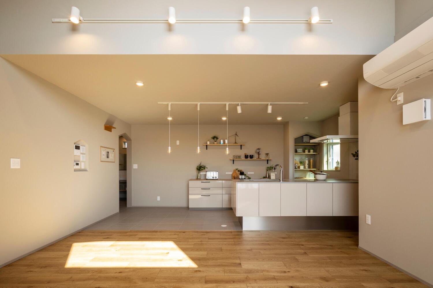 ホーム フォトギャラリー ブランド別 すべて 光・風・緑と暮らす平屋 光・風・緑と暮らす平屋 紫波町 25.36坪 ブランド別|すべて 室内に降り注ぐあたたかな光、通り抜けてゆく風が心地よい住まい。 心地よい室内環境はパッシブ設計によって実現しました。画像のみを表示全 10 枚中 1 枚目を表示Next ≫ 窓の近くに腰掛け、窓の外に広がる庭や公園を眺めながら過ごす。 穏やかな時間が流れる平屋の住まいとなりました。画像のみを表示全 10 枚中 2 枚目を表示≪ Prev|Next ≫ 平屋でありながら勾配天井の吹抜けを設けたリビング。 吹き抜けに面した高い位置の窓から日差しを取り入れます。画像のみを表示全 10 枚中 3 枚目を表示≪ Prev|Next ≫ キッチンに立つとリビングの先に外の景色、空が広がります。 パントリー、リビング収納、カップボード…と収納が充実しているため、いつでも整頓された空間で気持ちよく過ごせます。画像のみを表示全 10 枚中 4 枚目を表示≪ Prev|Next ≫ 共有のスペースと個人のスペースの間にはファミリークローゼットを。 こちらは通路も兼ねており、家族は通り抜けながら衣類をピックアップする→個室で着替えるという流れが可能なウォークスルークローゼットです。 玄関のすぐそばですので上着や帽子が出し入れしやすく、また、ランドリールームも近くにあるので乾いた衣類の収納が効率よく行えます。画像のみを表示全 10 枚中 5 枚目を表示≪ Prev|Next ≫ 収納を備えた主寝室。 ゆっくりと休むことを重視し、落ち着いたトーンの室内に仕上げました。画像のみを表示全 10 枚中 6 枚目を表示≪ Prev|Next ≫ 収納が充実し、手入れがしやすいように仕上げたユーティリティ。 2人同時に立っても作業ができるゆとりのある空間です。画像のみを表示全 10 枚中 7 枚目を表示≪ Prev|Next ≫ 脱衣室・ランドリー。 洗濯物はこの場所で室内干しします。 タオルや洗濯用品などがすっきりと収納できるスペースを備えています。画像のみを表示全 10 枚中 8 枚目を表示≪ Prev|Next ≫ 落ち着いた雰囲気のトイレ。 美しい照明の光が空間を照らします。画像のみを表示全 10 枚中 9 枚目を表示≪ Prev|Next ≫ 玄関ホールにあるニッチ。 室内のニッチや開口は家型になっています。 お施主さまのこだわりであり、この住まいのポイントです。画像のみを表示全 10 枚中 10 枚目を表示≪ Prev 滝沢市牧野林モデルハウス 【来場予約受付中】 2階リビングから見渡す四季の絶景岩手山と暮らす家 ご予約はこちらから 北上市しらゆりモデルハウス 【来場予約受付中】 居場所のある暮らしひとりひとりが自分らしく過ごせる家 ご予約はこちらから もっと詳しく知りたい、施工事例が見たい方におススメ HPには掲載されていない写真が多数掲載された施工事例を無料プレゼント♪ ハウスM21の住まいに対する考えや思い、施工事例なを掲載したコンセプトブックをプレゼントいたします。 資料請求はこちら 一覧へ戻る ブランド別 大きさ別 タイプ別 すべて ハウスM21 +archi すべて 20坪台 30坪台 40坪台 50坪台 平屋 インナーガレージ スキップフロア 非住宅 リノベーション